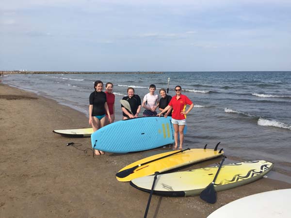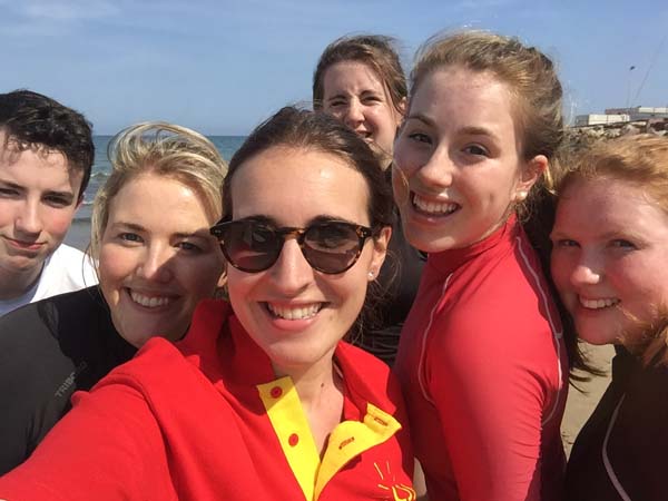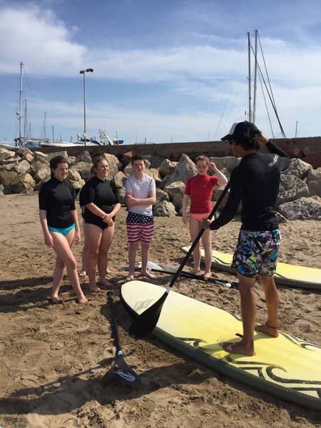After classes, Carla brought us to a nearby village called Pobla de Farnals where she introduced us to her brother, Rubén and her friend Santi. Rubén and Santi, who work at the surf club there, showed us how to paddle surf! This involved balancing on a surfboard and using a paddle to navigate through the water!