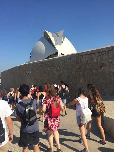 Afterwards, we visited the Hemisferic Cinema which is close to the Fallas Museum. The Hemisferic Cinema is situated in another of the futuristic buildings in the City of Arts and Sciences. It has a 180-degree curved screen on the roof and you sit in a reclined position to view it. You also get a headset which can change the audio to whichever language you like so I was able to watch the film in English which my friend from Italy watched it in Italian, but from the same screen! We watched a documentary on American National Parks on this 180 degree curved screen, which was quite cool because you can imagine viewing the likes of the Grand Canyon on such a realistic screen! It was very cool to see and experience, and we all enjoyed it. Some of the girls had actually already been to the Hemisferic Cinema with their Spanish families during the week but they had gone to see something else, so were happy to come along again.