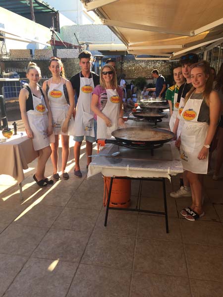 Afterwards, we headed back to AIP for 5:30pm to meet with the other students, who are also part of the summer camp there, for our evening activity. We had all received travel cards to get around so we used these to board the tranvía (something similar to the Luas) with our tour guide José and headed to a restaurant beside the beach. At the restaurant, the chefs had 4 massive Paella pans on display and we watched as they walked us through the steps of making a Paella. Not only did we learn how to cook paella, but some of us also got to participate in stirring and preparing the paella! 2 Paellas contained chicken and rabbit, and the other 2 contained seafood. We were out in an enclosed patio so we could enjoy the nice weather at the same time. They used huge gas rings and huge pans, called “Paelleras”, especially for paella. The best bit was that when all was cooked, we got to have a feast on the paella! They also gave us mussels and salad so we were stuffed! I’m still not sure whether I preferred the meat Paella or the seafood Paella, both were nice…although I had never eaten rabbit before! Afterward, we headed back to the academy with the tour guide and went back to our families for the night where we had dinner, chatted about our day and headed for bed.
