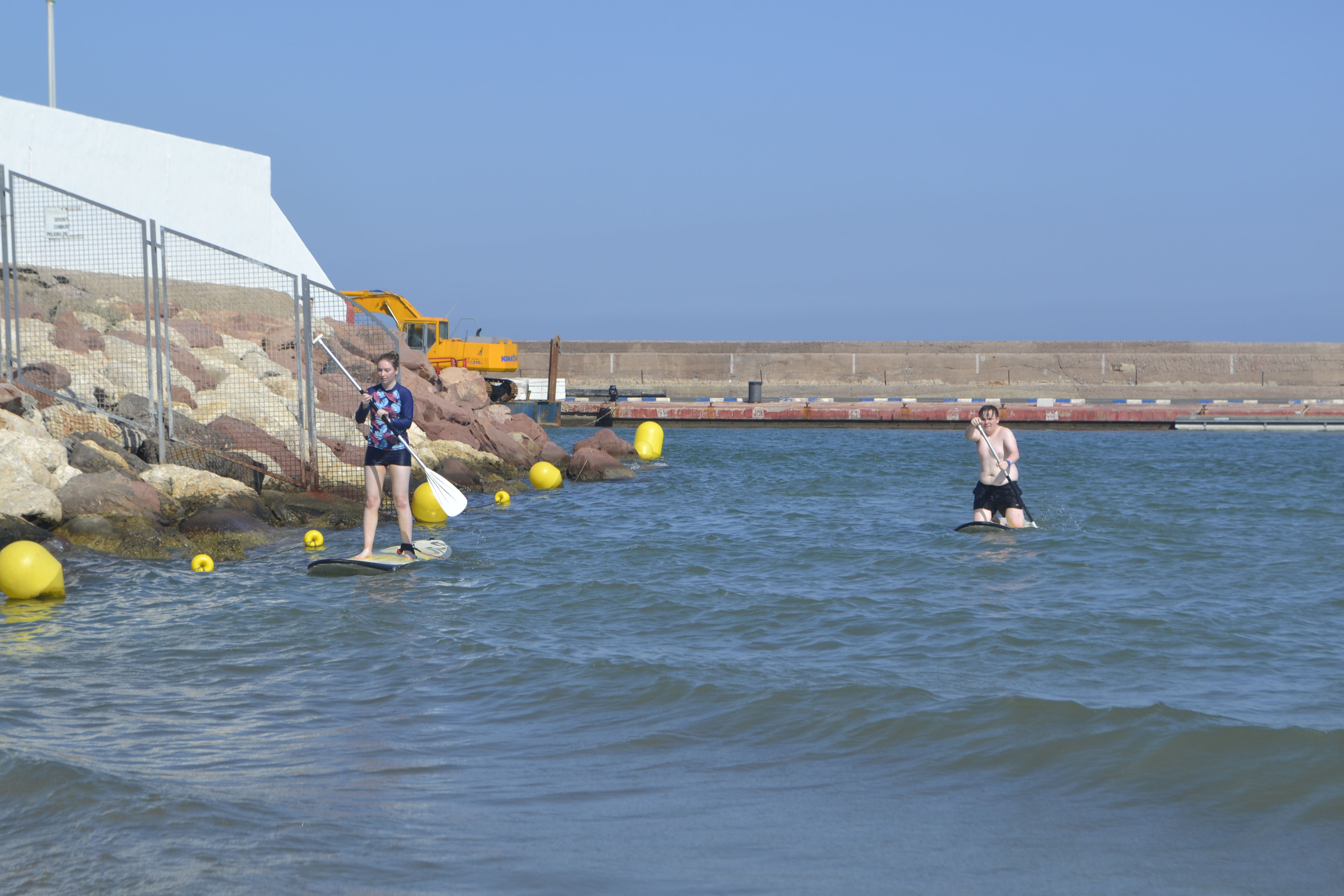 After classes today we had a really fun activity of going paddle surfing outside of the city to a little village called Pobla de Farnals. Alba took us out on the bus to get there. The surfing was in a surf school called Aussie Surf School and we were taught by Rubén, one of the teachers. I remember Rubén from 2 years ago when I did the course as a student with CSS and so it was great to see him again. We all learned a lot about paddle surfing technique and we had perfected it by the end of the class……. well almost 😉. As a test of our new skills, Rubén decided it would be a good idea for us to have a race; we were split into teams and paddled the best we could – In the end, myself Abby and Aoibhín won.