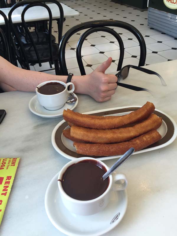 Meanwhile, myself and Mícheál decided to explore the city centre a bit more where they tasted some Spanish cuisine in Lizzaran, a wonderful tapas restaurant, followed by churros con chocolate in Valor (the Spanish equivalent to Cadbury’s!)