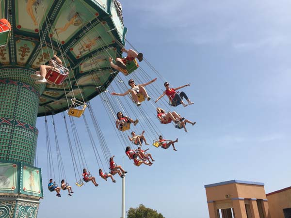 We were so lucky: the high season on the Spanish coast hasn’t started yet and so there were no queues. We could go on the rides over and over again! El Vuelo de Fénix involved a sudden drop from about 70 metres! Definitely not for the faint hearted! El Tornado was made up of aerial swings which rose to a height of 80 metres! The views were amazing and it felt like we were flying – although it was very scary to look down! Títánide was one of the best rollercoasters with speeds of 100kms/hour, 360 degree loops and barrel-roll loops and all while our feet were dangling below!! Synkope, which was my favourite, was a large arm which swung from side to side while gently spinning. I thought it gave a cool sensation of falling combined with excellent views!