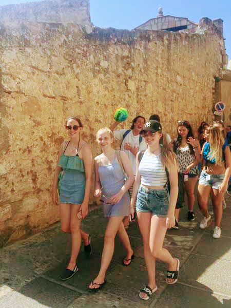 From AIP, we got a bus with lots of other international students from AIP (some of which we now see as friends!), to a coastal village called Peñíscola about 2 hours away. One of the lads was playing music on a speaker during the bus ride and we were all chatting away, so it didn’t seem like 2 hours. The beach was absolutely packed and the sand was golden and soft. The beaches here are so amazing, they are like something out of a movie and the water is lovely too, with little or no seaweed and no jellyfish (like at home!). The water was fairly shallow too so you could swim out a good bit and still touch the sandy ground. Me and some of the other students swam out to an old castle on the other side of the bay where we climbed up a set of steps and found a cool place to jump off from and into the water! It was deep enough to jump in but not too deep in terms of safety, plus the water was very calm so it was perfect! Unfortunately, we didn’t get any pictures of this because of the water…but trust me, it was fun! Towards the end of the day, we went on a tour of the town and went up to the old castle where there was a gorgeous view of all the surrounding areas! When we went into the castle, there seemed to be so many steps that you could just keep going higher and higher, and just when you thought you had seen a great view, there was an even better one up higher! We had 20 minutes to spend looking around the castle and reading about its history, then we me outside the castle and made our way back to the bus.